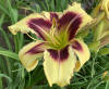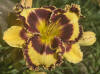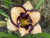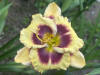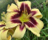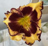 žlutokrémová s purpurově hnědým okem a lemem |