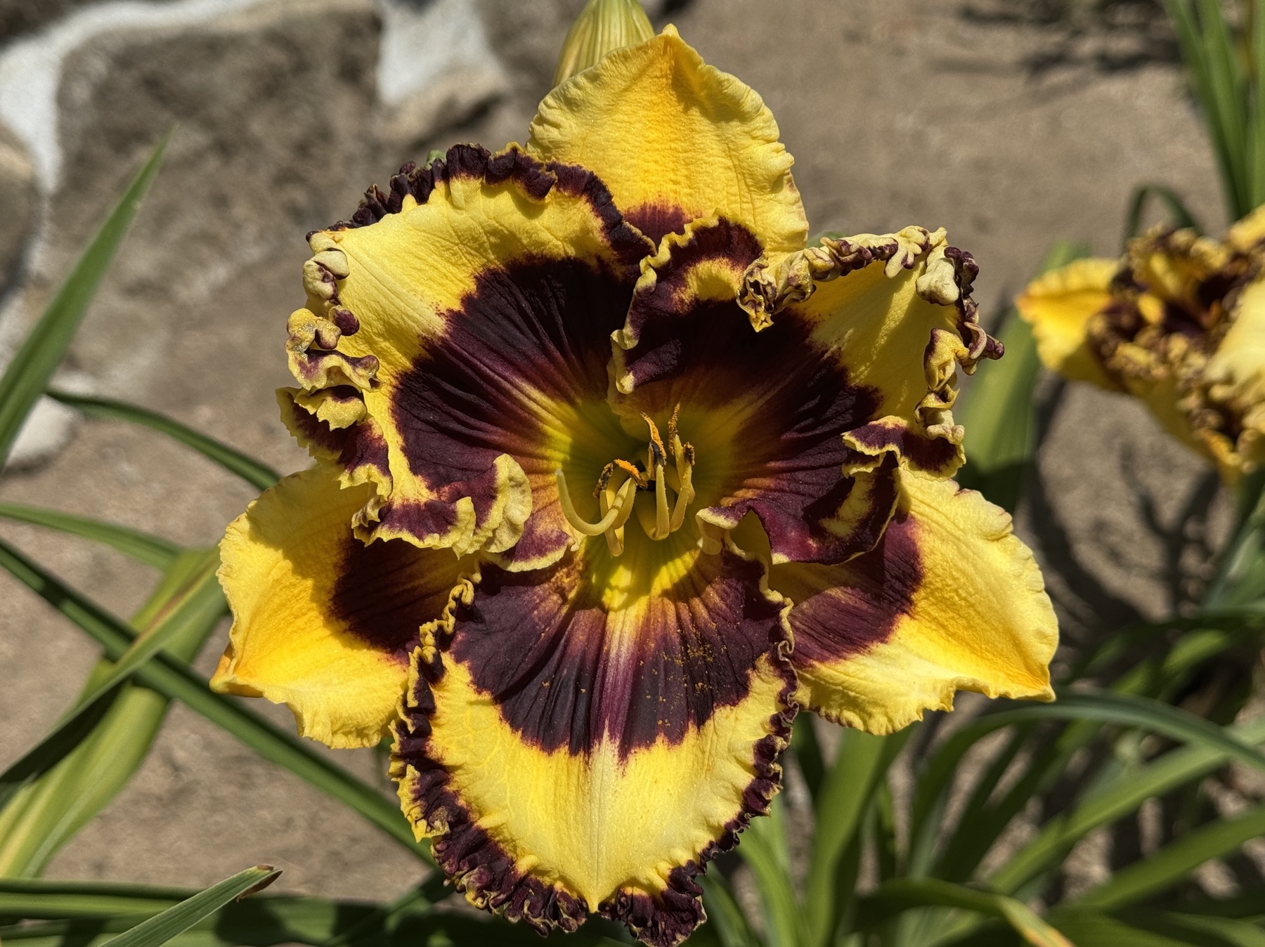 94/18 cm, zvlněné žluté květy s výraznou purpurovou kresbou se