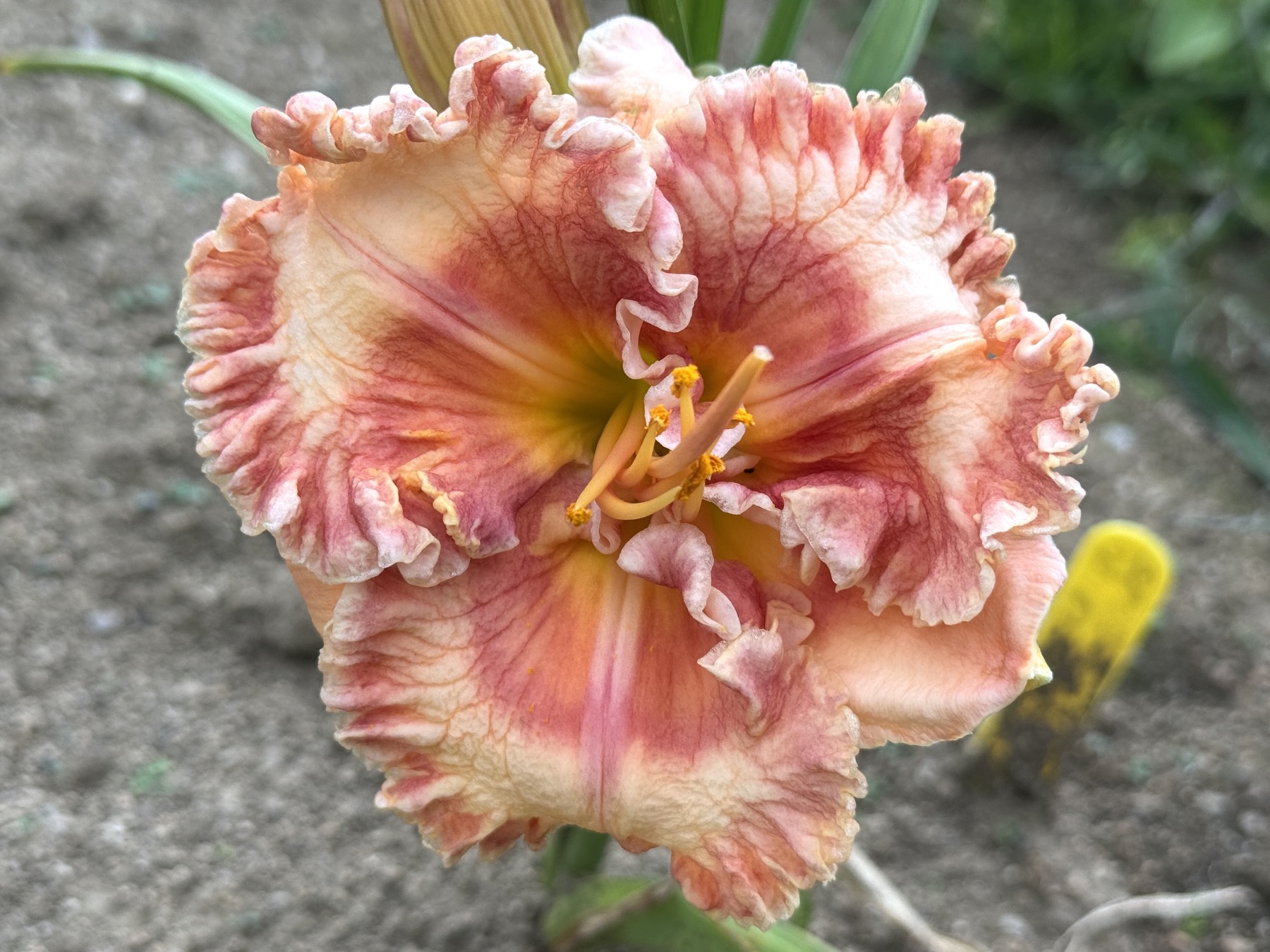 65/13 cm, krémové velmi zvlněné květy mají zlatě růžové okraje, bledě