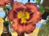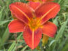 RE, 80/23 cm, třešňově červená, zelené hrdlo a velikánský žlutý střed,