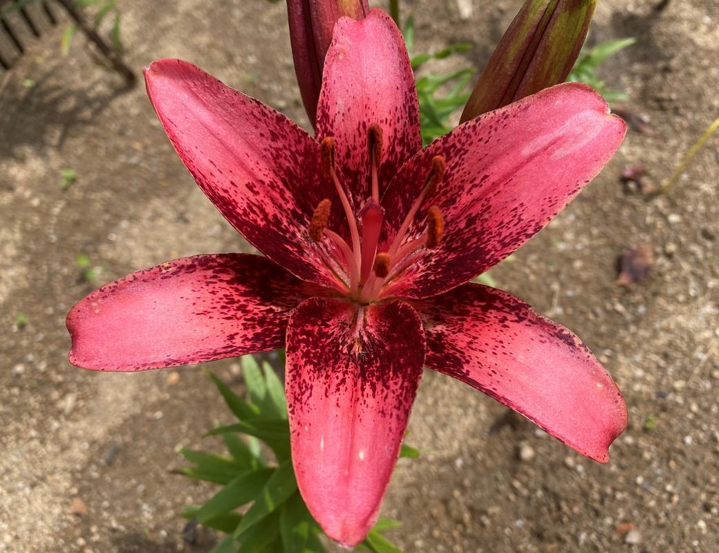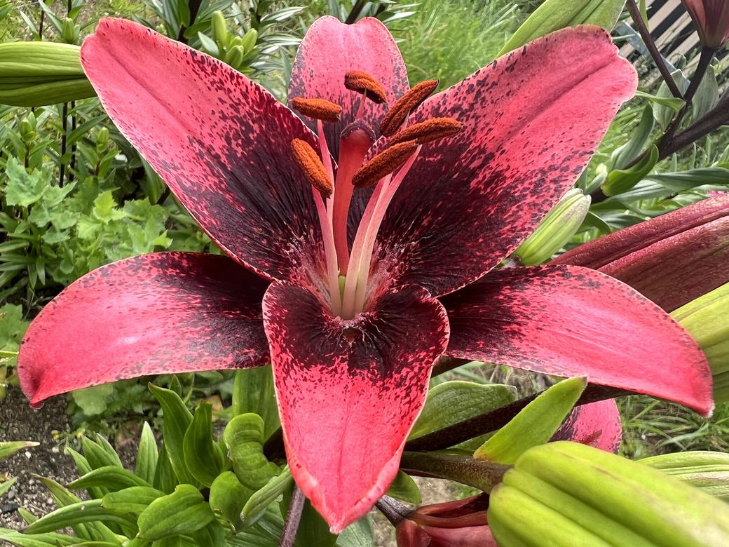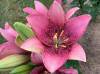 Azijský hybrid, velmi tmavě orchideově růžové květy,